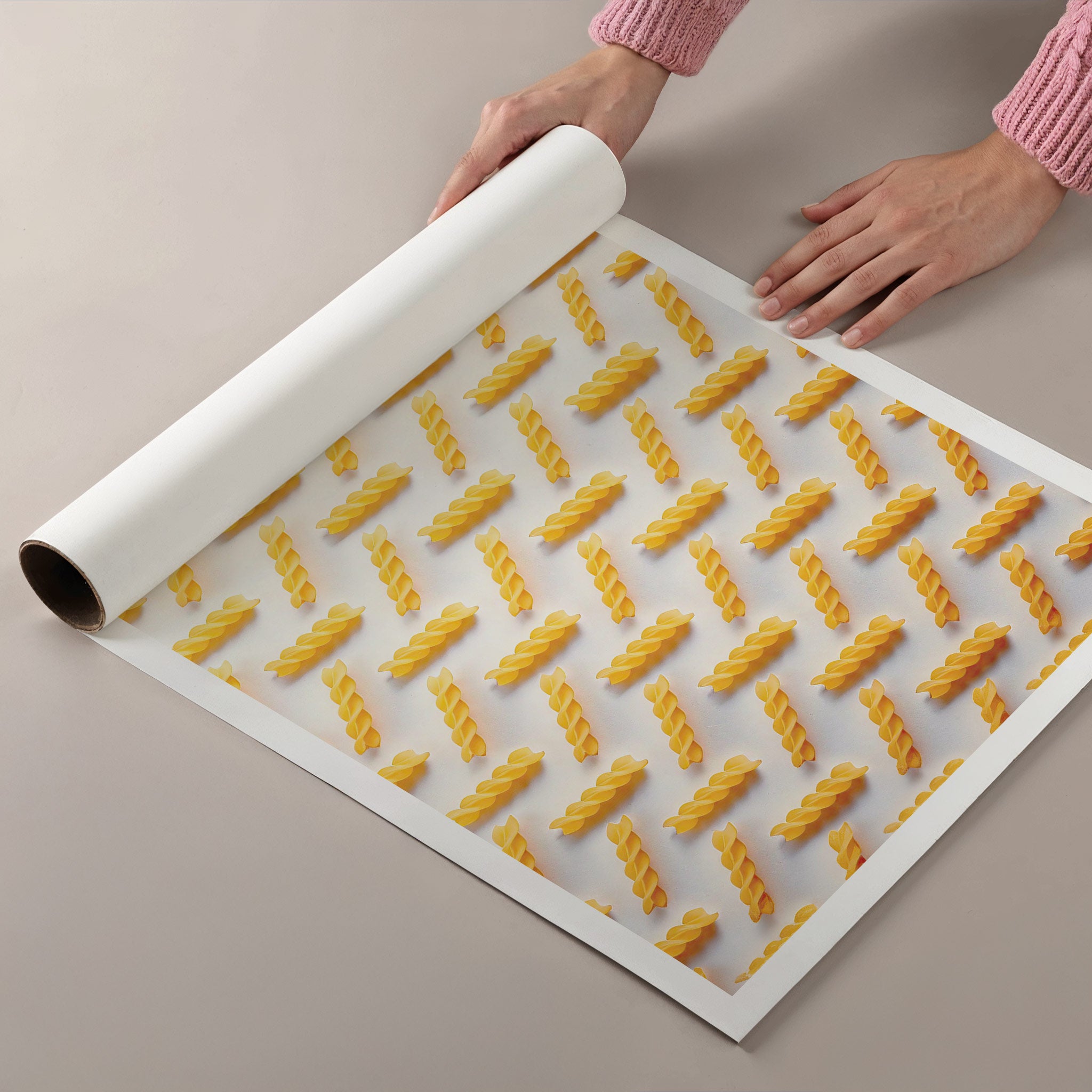 La pasta si trasforma in linguaggio visivo, tra segno, forma e ritmo. Pastology celebra uno degli elementi più iconici della nostra cultura attraverso composizioni astratte fatte di pattern geometrici, texture e colore. Lunghe, corte, lisce, arricciate: le diverse tipologie si traducono in strutture visive che alternano ordine e irregolarità, creando un equilibrio tra spontaneità e ripetizione. La pasta diventa progetto grafico, materia quotidiana elevata a modulo estetico, riletto in una nuova grammatica visiva.