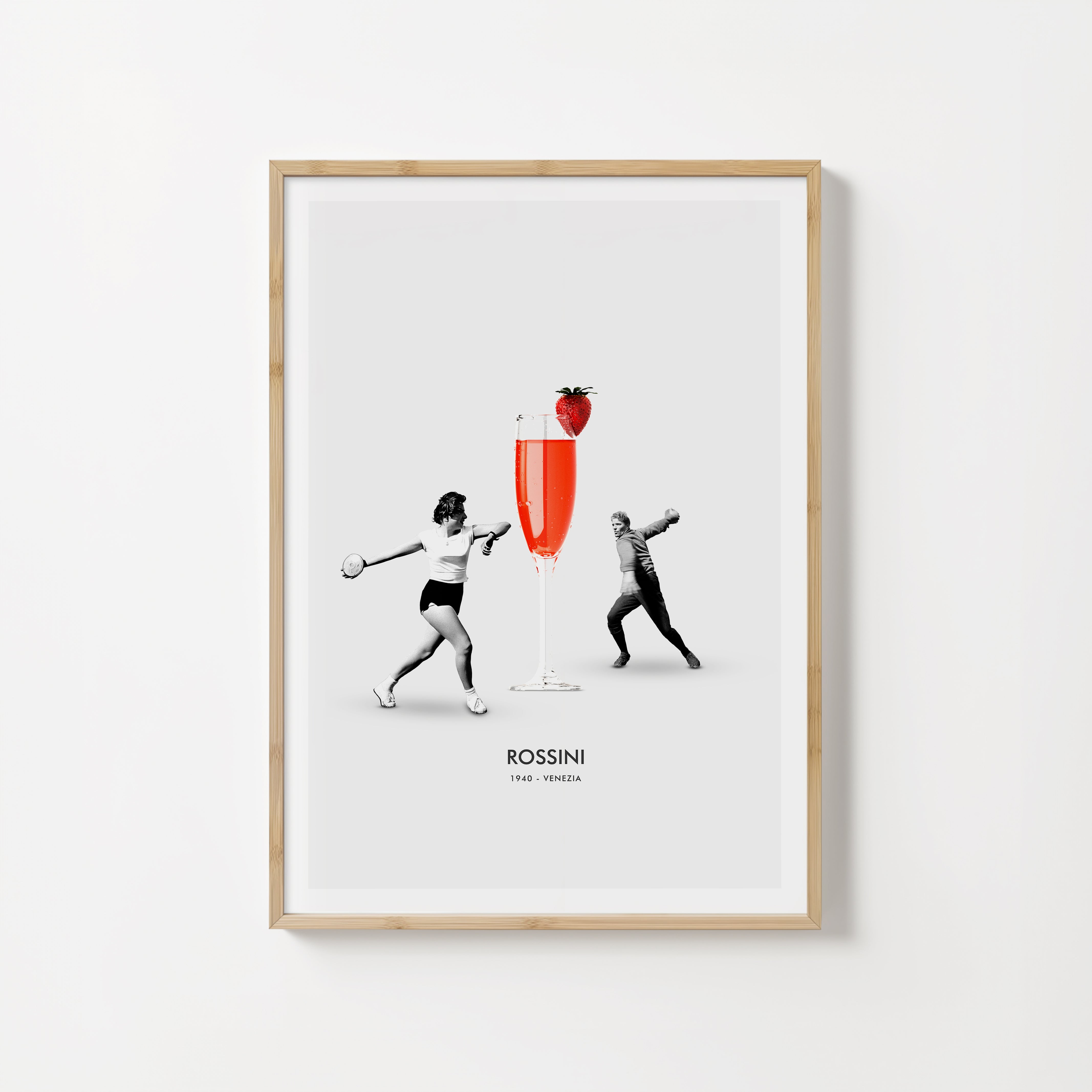 La collezione Cocktail rende omaggio ai grandi classici della mixology attraverso un linguaggio visivo che unisce nostalgia e sperimentazione grafica. Ogni drink è raccontato a partire dalla sua identità: il profilo del bicchiere, la tonalità inconfondibile, il gesto del servizio. Elementi fotografici, silhouette e dettagli d’epoca si fondono in collage essenziali e sorprendenti, restituendo l’eleganza senza tempo di ogni ricetta. Una serie che distilla forma, carattere e atmosfera in stampe dal sapore vintage-contemporaneo.